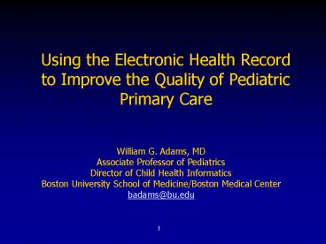 <Notice: Removed> Using the Electronic Health Record to Improve the Quality of Pediatric Primary Care PowerPoint PPT Presentation
