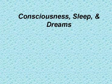 1Consciousness, Sleep, Dreams