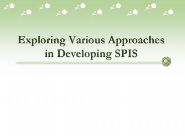 <Notice: Removed> Exploring Various Approaches in Developing SPIS PowerPoint PPT Presentation