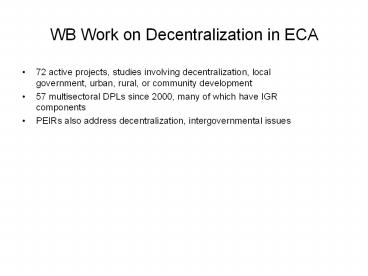 Title: WB Work on Decentralization in ECA