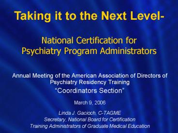Title: National Certification for Psychiatry Program Administrators
