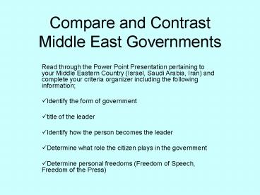 Compare and Contrast Middle East Governments PowerPoint PPT Presentation