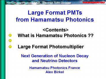 <Notice: Removed> Large Format PMTs from Hamamatsu Photonics PowerPoint PPT Presentation