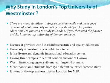Why Study inLondon's Top University of westminster PowerPoint PPT Presentation