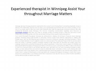 Experienced therapist In Winnipeg Assist Your throughout Marriage PowerPoint PPT Presentation