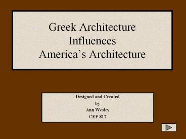 <Notice: Removed> Greek Architecture Influences America PowerPoint PPT Presentation