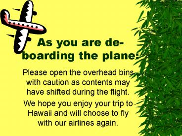 As you are deboarding the plane: PowerPoint PPT Presentation