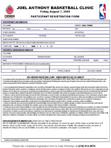JOEL ANTHONY BASKETBALL CLINIC WAIVER AND