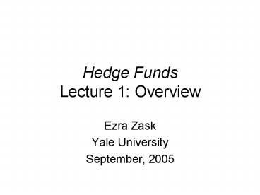 <Notice: Removed> Hedge Funds Lecture 1: Overview PowerPoint PPT Presentation