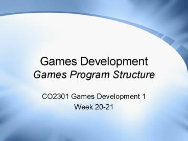 Title: Games Development Games Program Structure