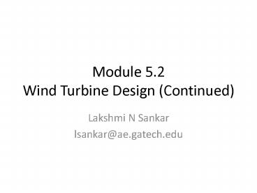 <Notice: Removed> Module 5.2 Wind Turbine Design (Continued) PowerPoint PPT Presentation