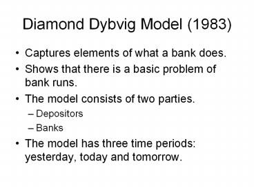 <Notice: Removed> Diamond Dybvig Model (1983) PowerPoint PPT Presentation