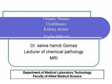 Urinary Stones Urolithiasis Kidney stones Nephrolithiasis PowerPoint PPT Presentation