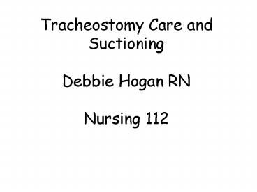 Tracheostomy Care and Suctioning Debbie Hogan RN Nursing 112 PowerPoint PPT Presentation