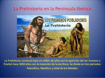 en tres periodos - Paleolítico, Neolítico y Edad de los Metales.