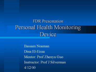 FDR PresentationPersonal Health Monitoring Device