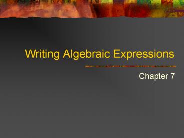 Writing Algebraic Expressions PowerPoint PPT Presentation