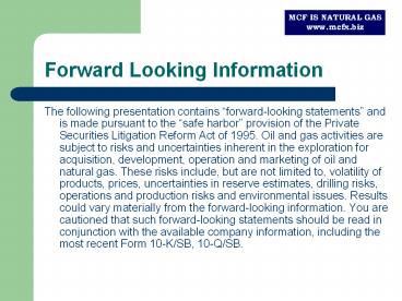 Forward Looking Information PowerPoint PPT Presentation