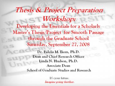 Thesis/Project - Strategies for Completing your Thesis/Project