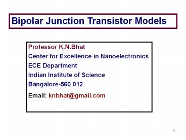 <Notice: Removed> Bipolar Junction Transistor Models PowerPoint PPT Presentation