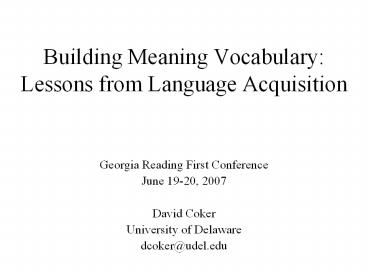 Title: Building Meaning Vocabulary: Lessons from Language Acquisition