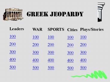 <Notice: Removed> Greek Jeopardy PowerPoint PPT Presentation