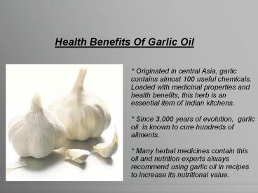 Title: Health Benefits Of Garlic Oil