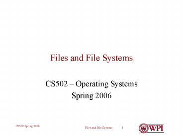 <Notice: Removed> Files and File Systems PowerPoint PPT Presentation