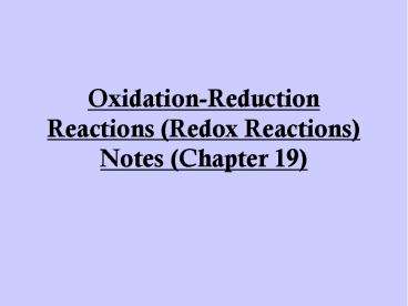 Oxidation-Reduction Reactions (Redox Reactions) Notes (Chapter 19) PowerPoint PPT Presentation