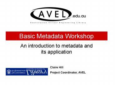 Basic Metadata Workshop PowerPoint PPT Presentation