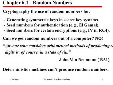 <Notice: Removed> Chapter 61 Random Numbers PowerPoint PPT Presentation