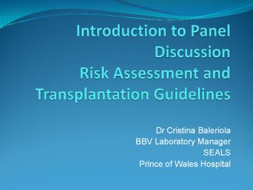 Introduction to Panel Discussion Risk Assessment and Transplantation Guidelines - PowerPoint PPT Presentation