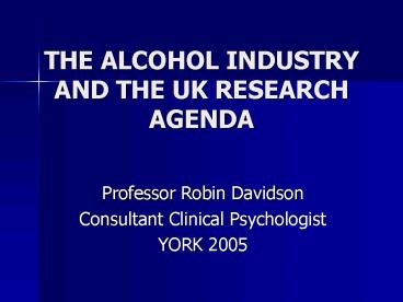 THE ALCOHOL INDUSTRY AND THE UK RESEARCH AGENDA PowerPoint PPT Presentation
