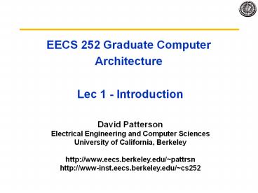 <Notice: Removed> EECS 252 Graduate Computer Architecture Lec 1 - Introduction PowerPoint PPT Presentation