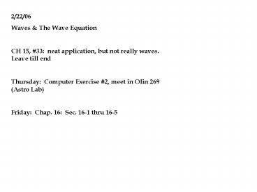 2/22/06 Waves The Wave Equation CH 15, 33