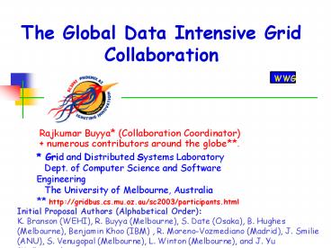 Branson (WEHI), R. Buyya (Melbourne), S. Date