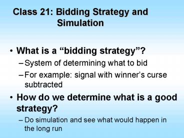 <Notice: Removed> Class 21: Bidding Strategy and Simulation PowerPoint PPT Presentation