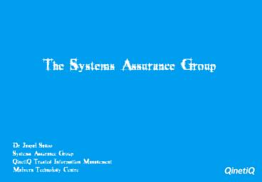 The Systems Assurance Group PowerPoint PPT Presentation