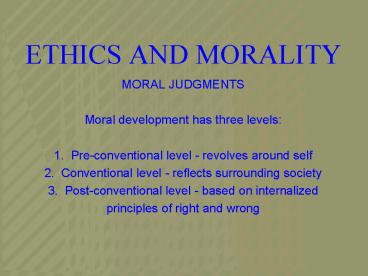 ETHICS AND MORALITY PowerPoint PPT Presentation
