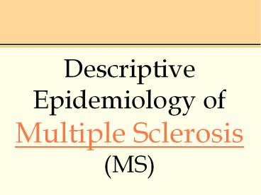 Descriptive Epidemiology of Multiple Sclerosis (MS) PowerPoint PPT Presentation