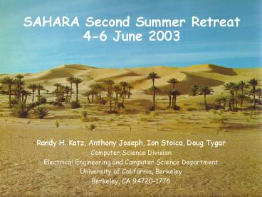 Title: SAHARA Second Summer Retreat 46 June 2003