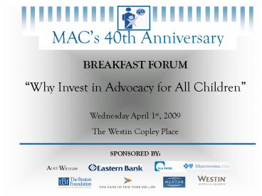 BREAKFAST FORUM Why Invest in Advocacy for All