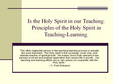 Title: Is the Holy Spirit in our Teaching: Principles of the Holy Spirit in Teaching-Learning.