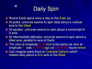 vertical axis to the West - At equator, universe seems to spin about a