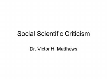 <Notice: Removed> Social Scientific Criticism PowerPoint PPT Presentation