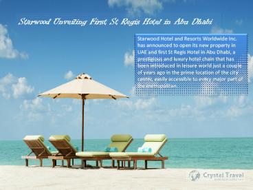 Starwood Unveiling First St Regis Hotel in Abu Dhabi PowerPoint PPT Presentation