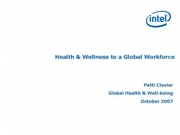 plan/support to improve their quality of life - Intel values and cares about the health of our