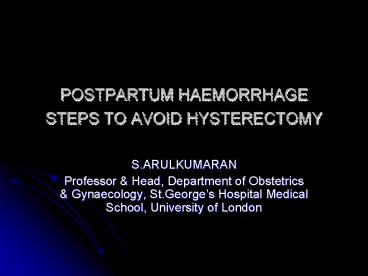 Title: POSTPARTUM HAEMORRHAGE STEPS TO AVOID HYSTERECTOMY