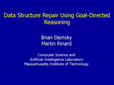 Data Structure Repair Using Goal-Directed Reasoning PowerPoint PPT Presentation
