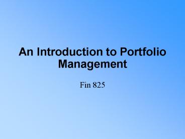 Title: An Introduction to Portfolio Management